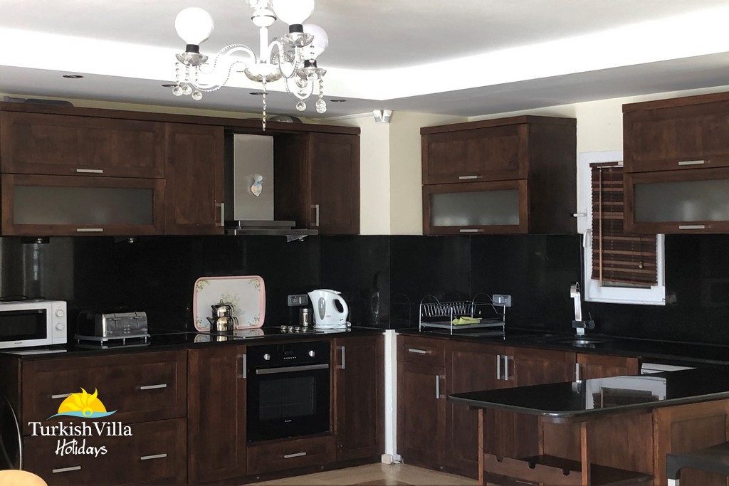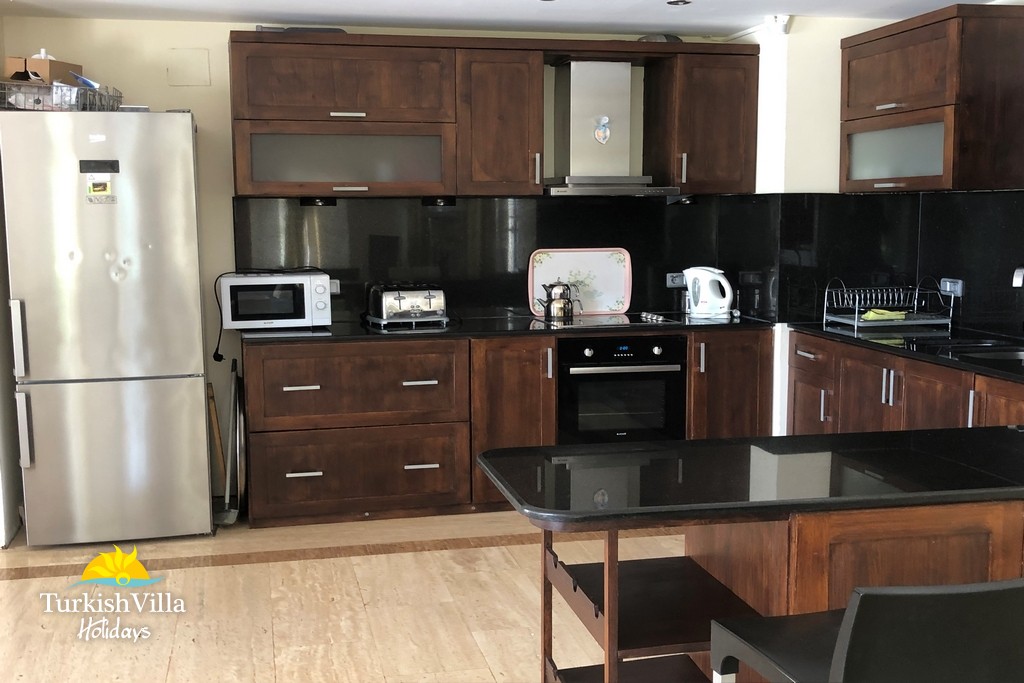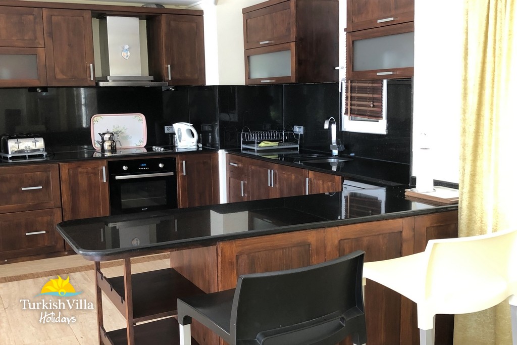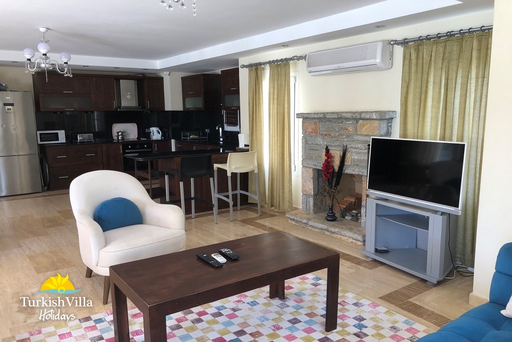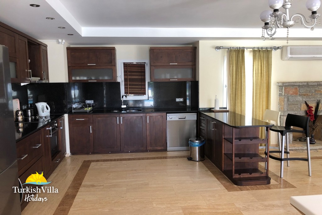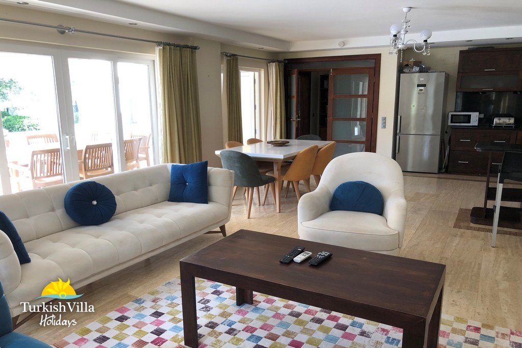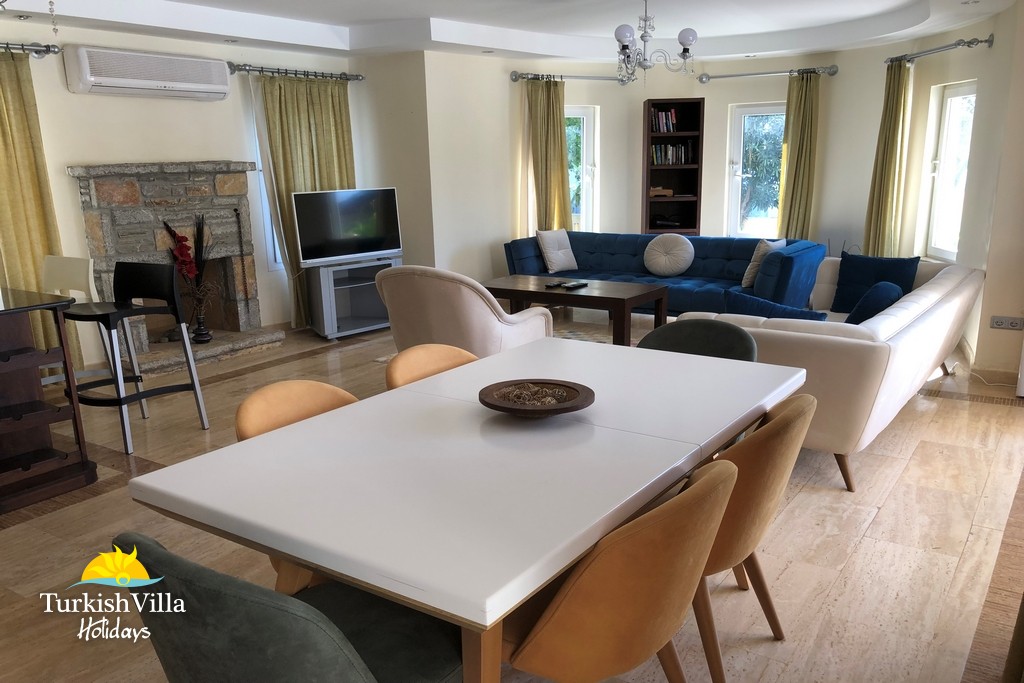 The dining table seats 6 people. Villa Dalyan Tulip has marble floors and air conditioning throughout.