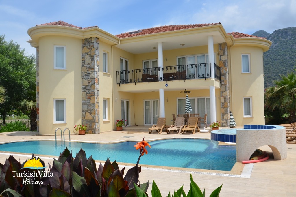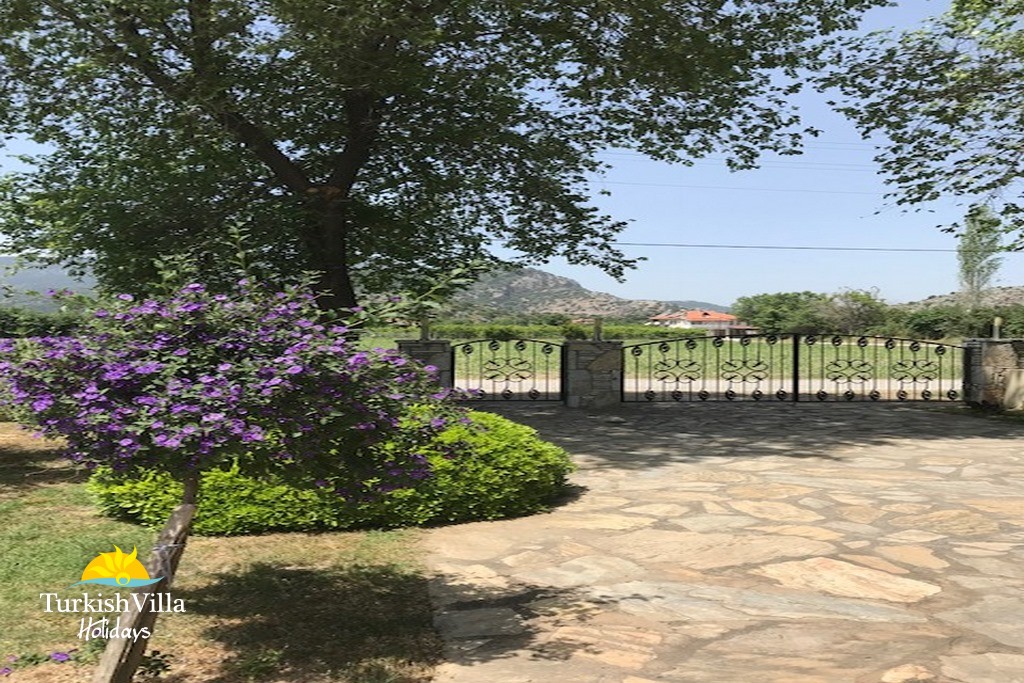 Villa Dalyan Tulip is in the rural area of Arik Basi, a 25-30 minute walk or 5 minute drive into Dalyan. Arik Basi has a backdrop of mountains, but the level village has acres of abundant fruit orchards. It is a perfect setting.