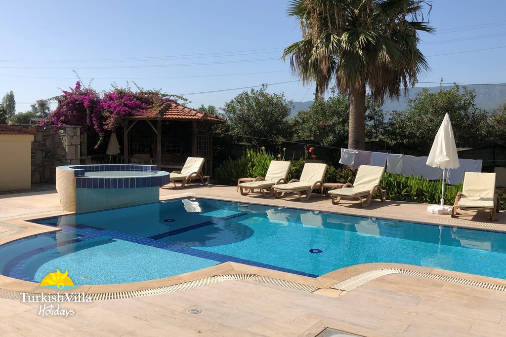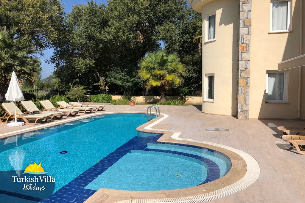 The outside space at Villa Dalyan Tulip is spacious, comfortable and private as there is virtually no passing traffic along this quiet country lane.