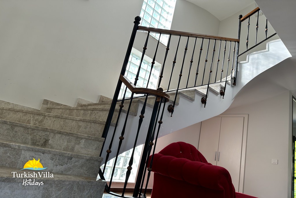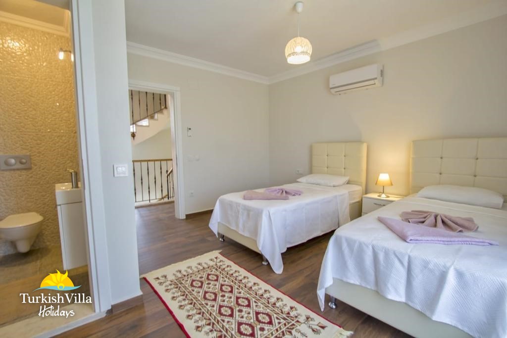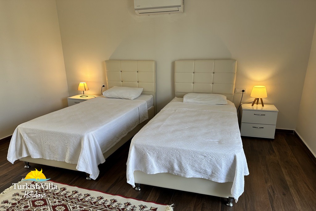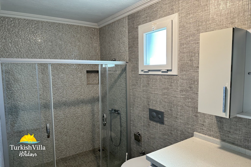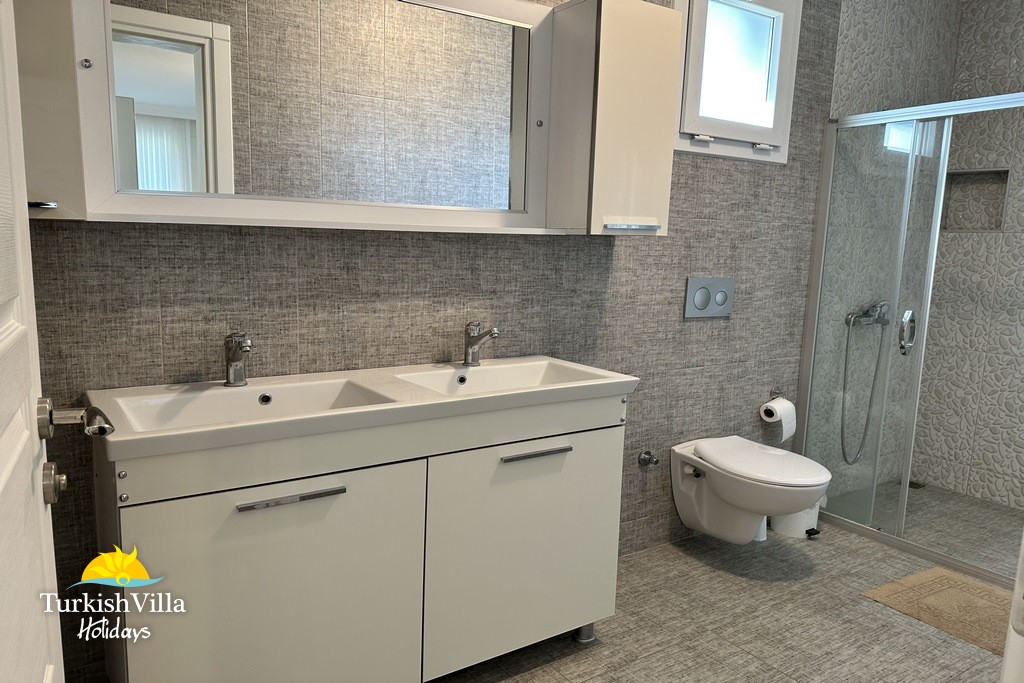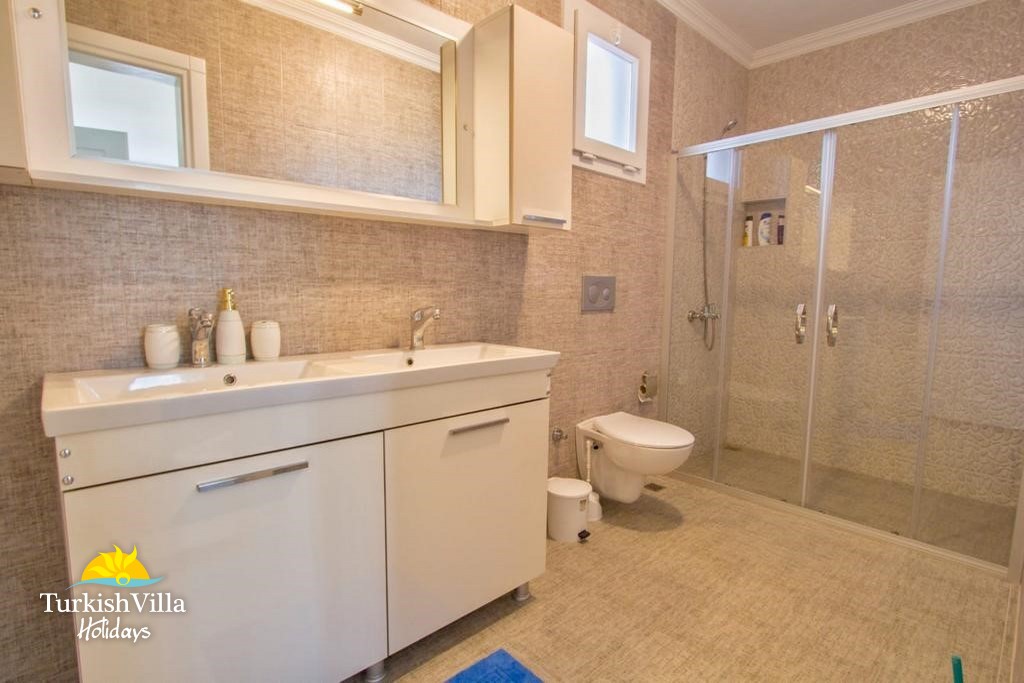 Villam Cagri is fully air conditioned throughout. There is a separate ground floor cloakroom and shower that doubles as the bathroom for the ground floor bedroom.
