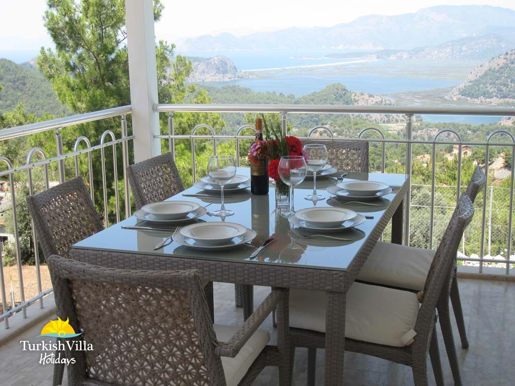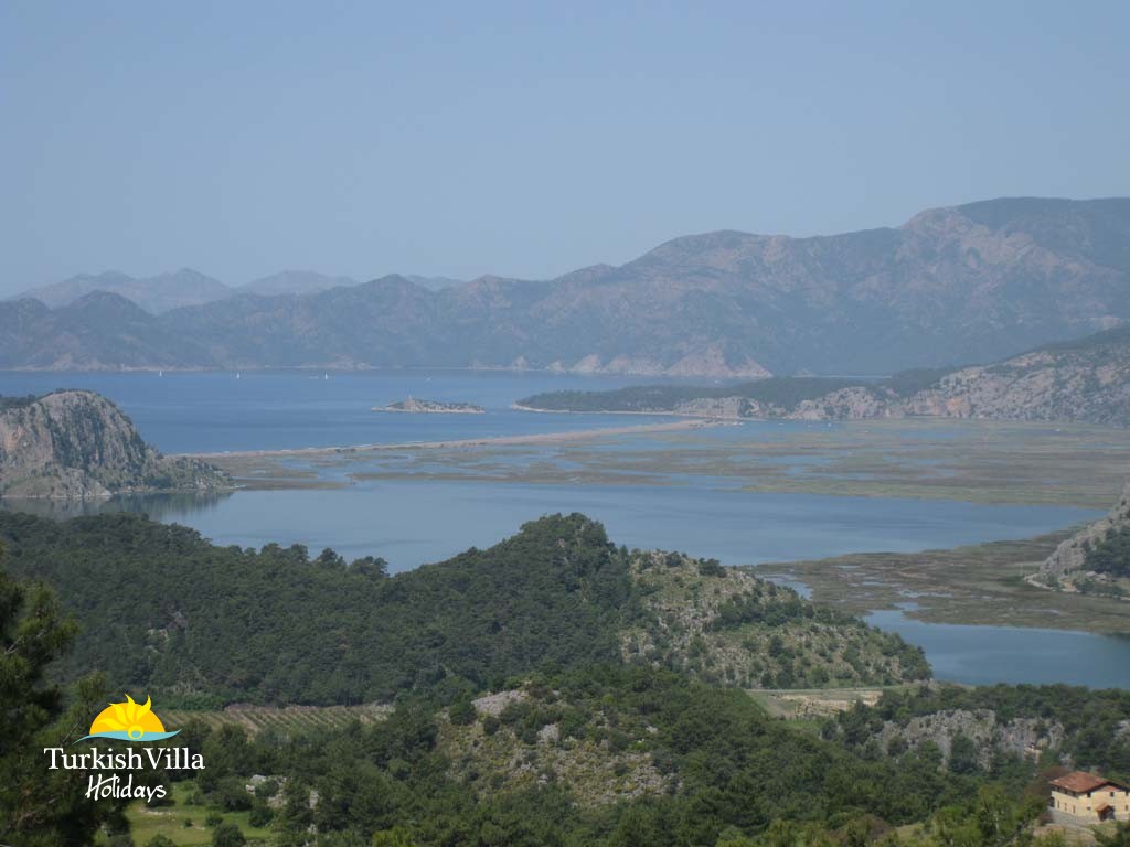 Burak Evi offers magnificent west facing views of Iztuzu beach, Dalyan delta and Ekincik bay from all rooms and terraces.