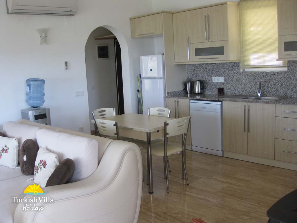Burak Evi is an upside down house. On the first floor level with the kitchen and lounge, bedroom 1 is a double bedroom ensuite with twin aspect, air conditioning and fitted wardrobes
